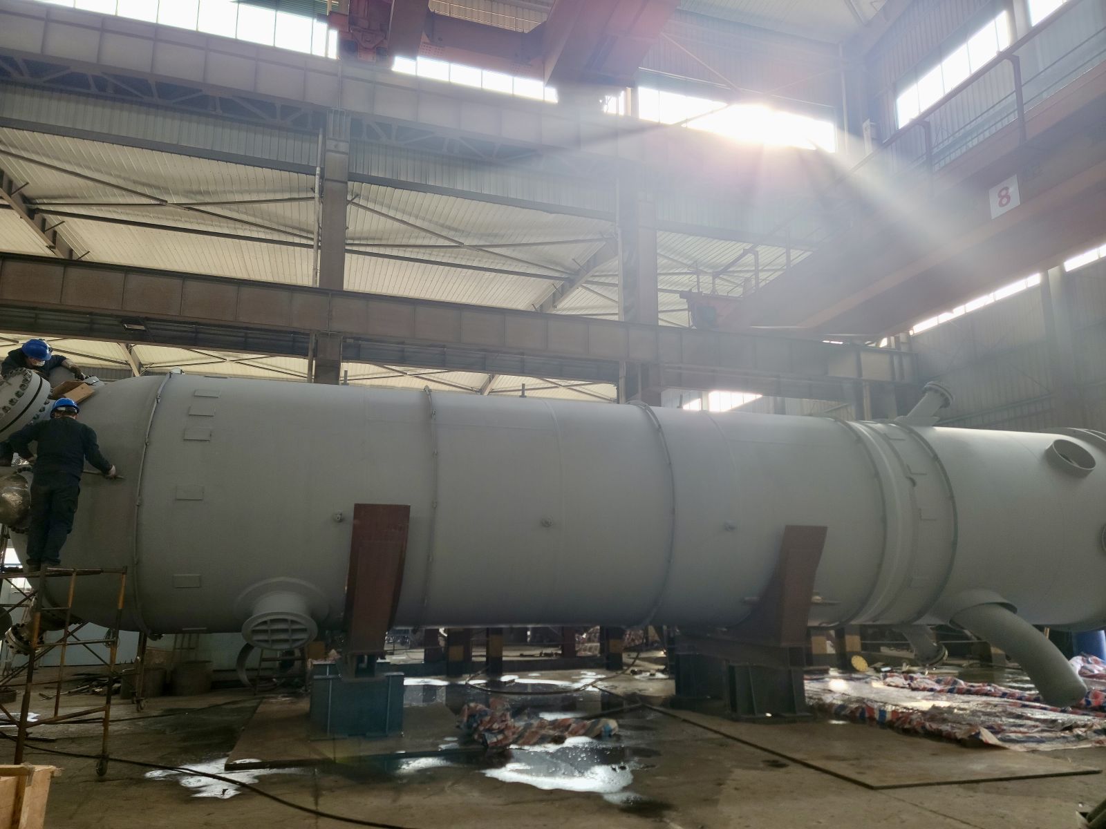 急客戶之所急,解客戶之所憂。我司車間班組連日加班加點(diǎn),團(tuán)結(jié)一致,上下齊心,在保證質(zhì)量的前提下超前完成生產(chǎn)制造。規(guī)格為3000×18000的甲醇合成塔,我公司提前十天交付客戶。