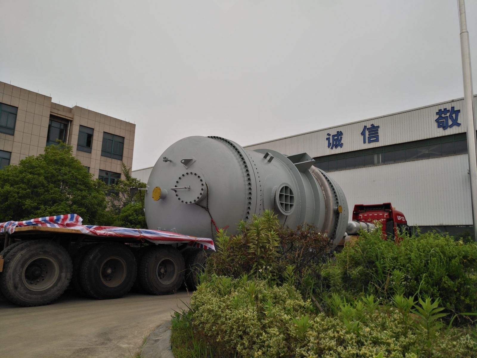 該環(huán)已醇脫氫反應(yīng)器為疲勞容器是項目的核心裝備,單臺設(shè)備凈重約120噸,殼程直徑約4米,換熱面積約2400平方米,設(shè)計溫度約400℃,多項技術(shù)、制造參數(shù)為公司近幾年制造最大產(chǎn)品之一。