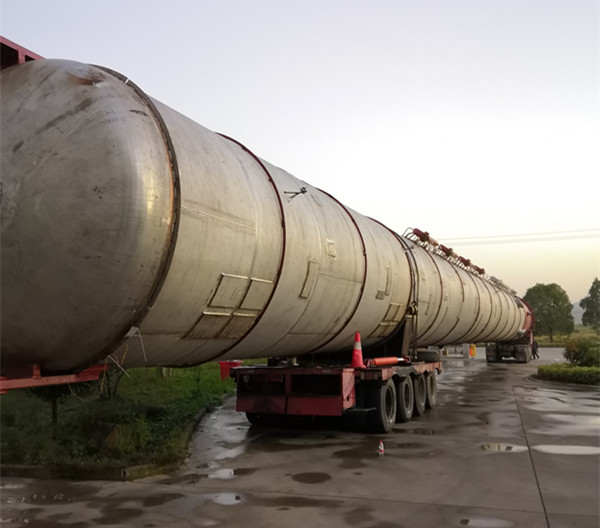 我公司制造重170噸,長45米,直徑3.6米無催化劑稀硝酸回收系統(tǒng)硝酸凈化反應(yīng)器(塔)制造完成,順利發(fā)往內(nèi)蒙。